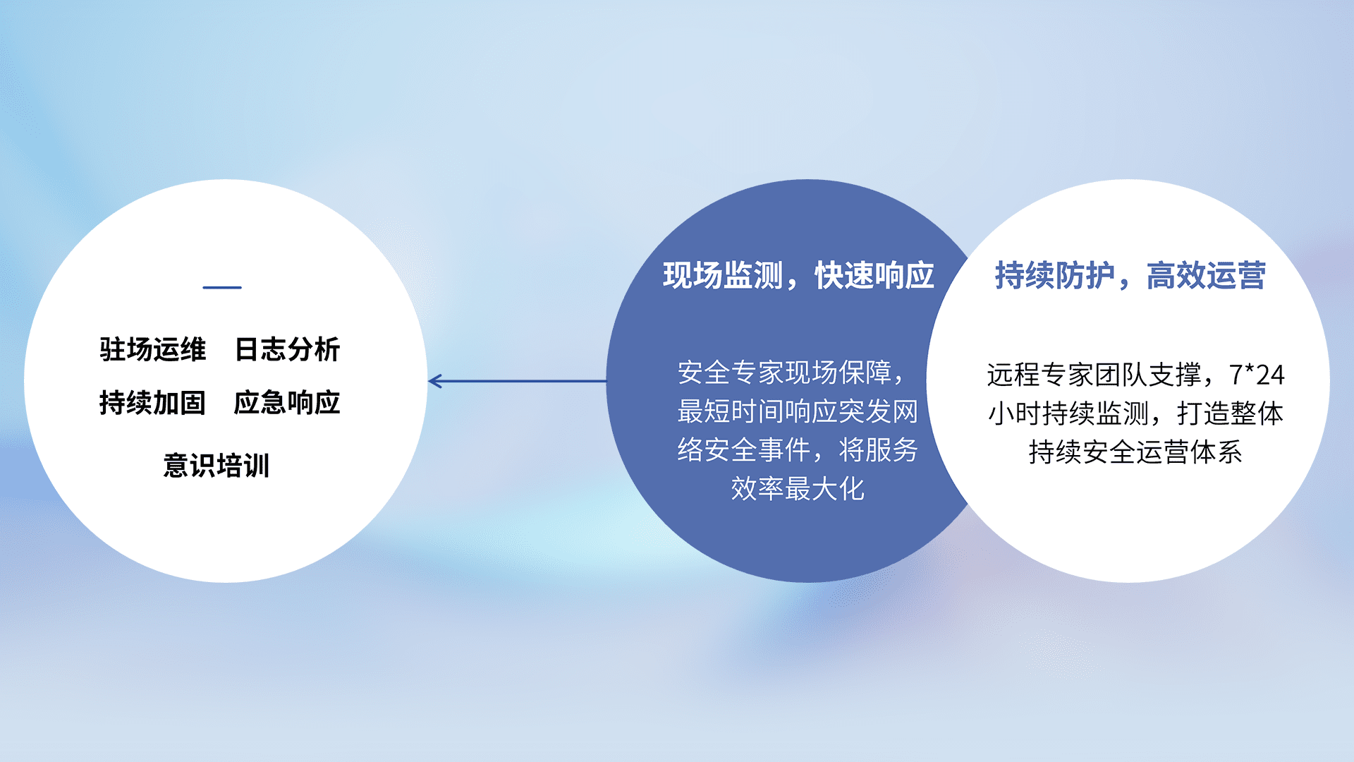 针对客户行业特性,,提供专属的一站式安全管理服务,,,,帮助客户全面感知网络空间威胁,,,通过安全专家的线上、、、线下防护支持,,实现风险闭环,,,将安全保障常态化,,,,为客户打造常态化安全运维运营服务。。。。